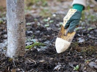 Поздней осенью, когда листья уже опадут, по периметру кроны заделывают до 30 кг органики (перепревший навоз или компост).