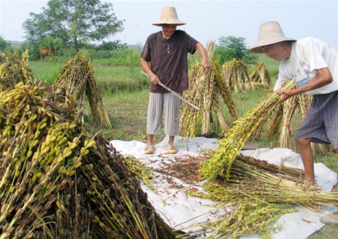 Срезанные стебли складываются на чистую ткань, снимаются коробочки и оставляются для высушивания. Далее они открываются руками, а семена высыпаются в подготовленную емкость.