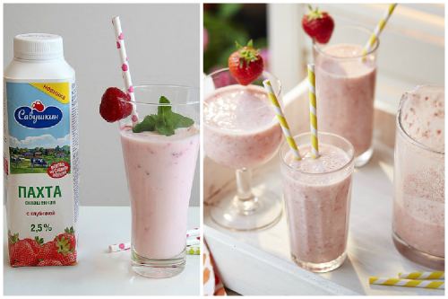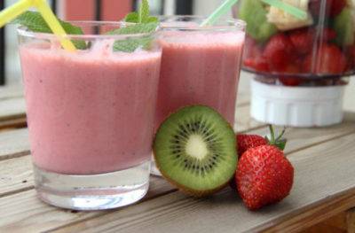 При индивидуальной непереносимости лактозы легко приготовить напиток без нее. В клубничный смузи без молока для более жидкой консистенции добавляется фруктовый сок. Такие коктейли полны витаминов.