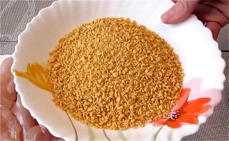Чипсы измельчаем в крошку среднего размера. Можно для этого использовать блендер, а можно просто пройтись по пакету с чипсами скалкой.