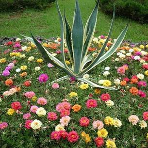 По мере разрастания портулак представляет пестрый красивый ковер, издалека бросающийся в глаза. Используется для создания цветущих площадок. Далее растение портулак на фото представлено в самых разнообразных вариантах использования: