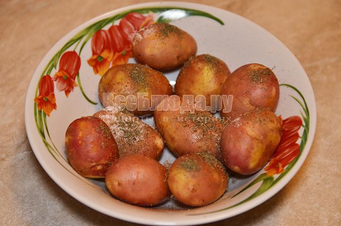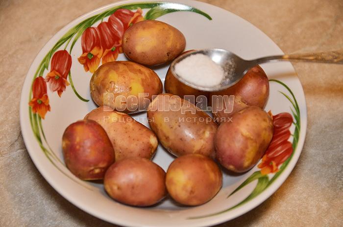 Картофель, если молодой можно приготавливать не очищая, так он получается намного вкусней, главное тщательно промыть его.