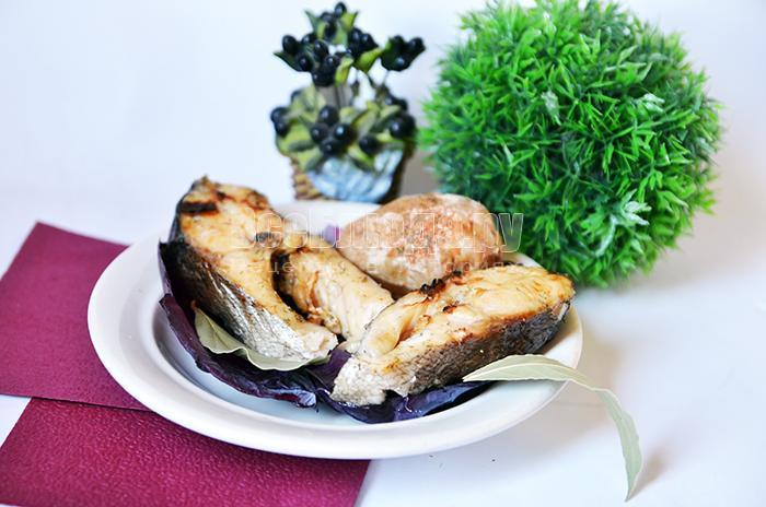 - Очищенную, потрошёную, нарезанную порционными кусками рыбку аккуратно солим, по желанию добавляем перец, обмазываем рафинированным оливковым маслом. Можно обсыпать кусочки молытыми сухарями из белого хлеба.